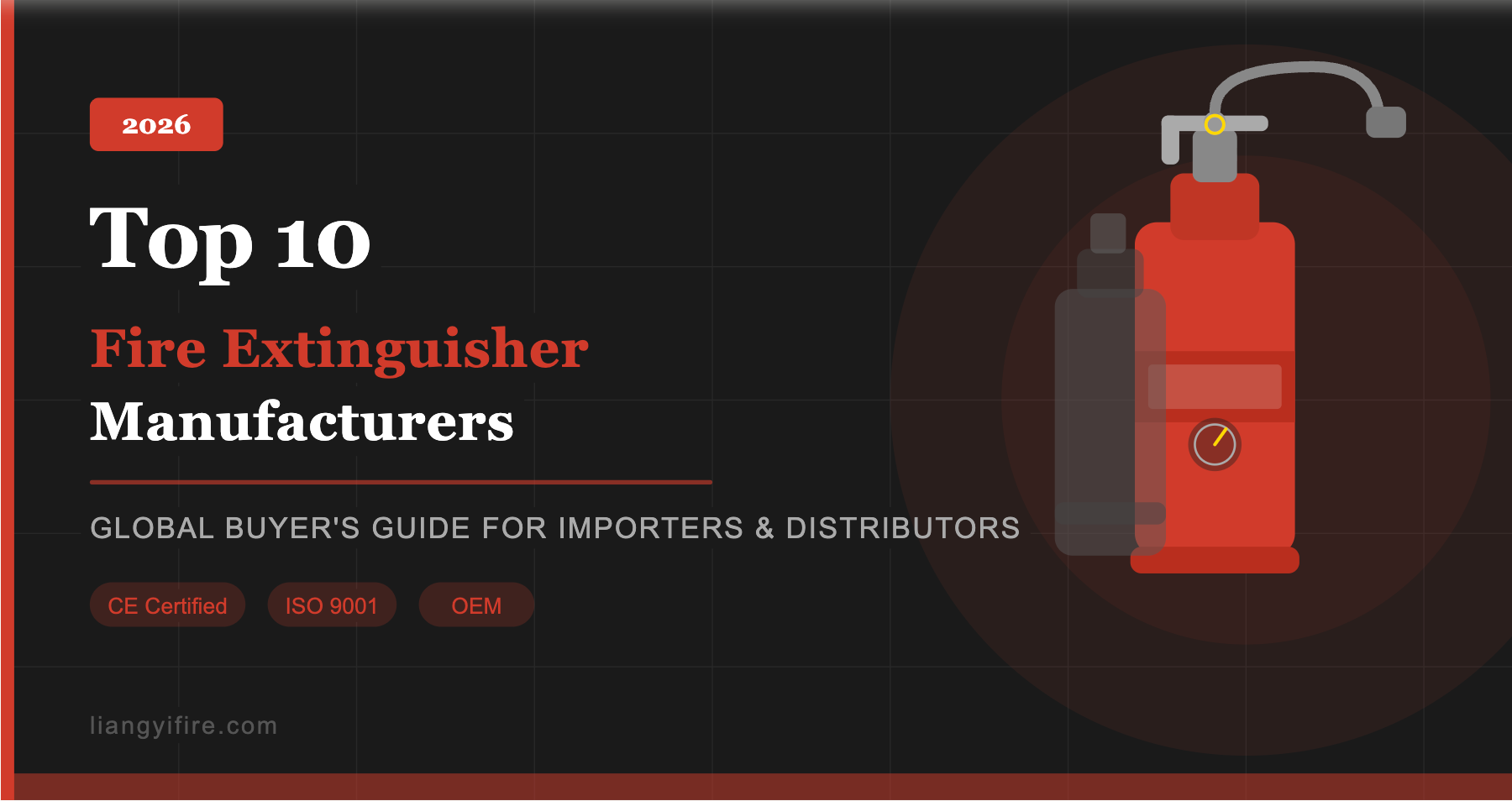 1. Liangyi Fire — Yuyao, China Liangyi Fire is a leading CE-certified fire extinguisher manufacturer producing 145+ SKUs including ABC dry powder, CO2, foam, and wheeled units. Based in Yuyao — China's fire equipment hub — they serve importers and distributors across Europe, the Middle East, Africa, and Southeast Asia with full OEM and private label support. 🌐 liangyifire.com